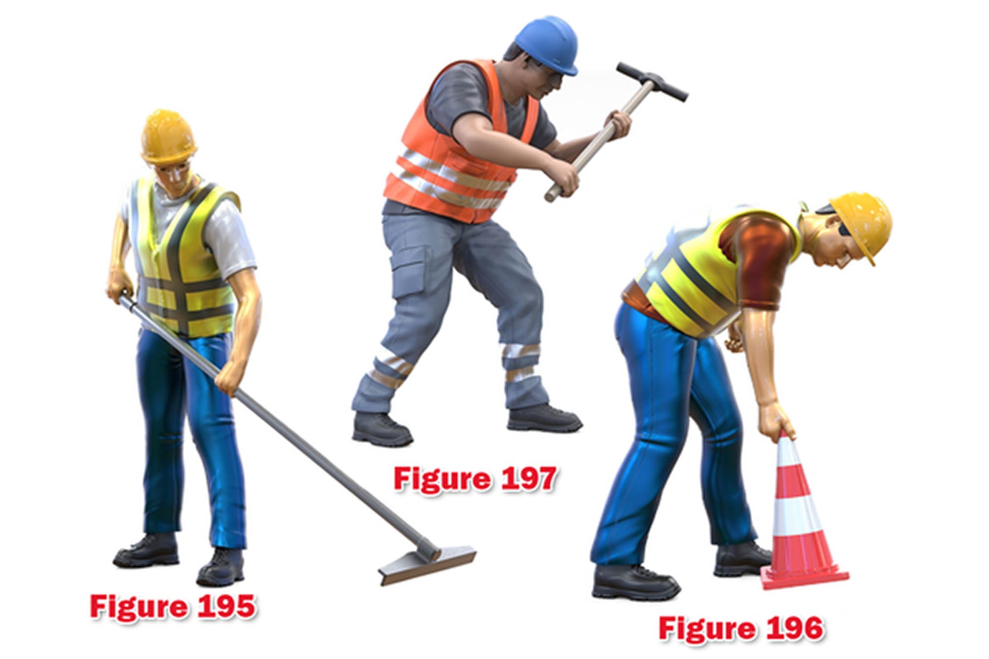 PYOS42 Figure Set 1:32 Scale - 3 x Construction Workers (Requires Painting)