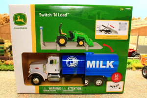 ERT47496 Ertl 1:32 Scale Peterbilt Milk Tanker Lorry with 'switch and load' flatbed and compact John Deere Tractor